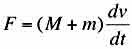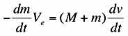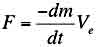 درین عبارت t زمان و m کتله لحظوی مواد محروق میباشد. از طرف دیگر قوه محرکه راکت متناسب است به سرعت بیرون رفت گاز های سوخته و مقدار جریان این گاز ها در واحد زمان.