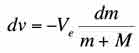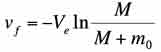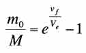 ازین معادله بصورت آسان میتوان تناسب کتله مواد سوخت بر کتله جسم را استخراج کرد.