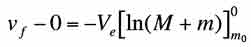 درین معادله vf سرعت نهایی راکت بوده که میتواند v1 یا v2 که قبلاً ذکر شد. بعد از محاسبه انتگرال فوق نتیجه ذیل را میتوان گرفت: